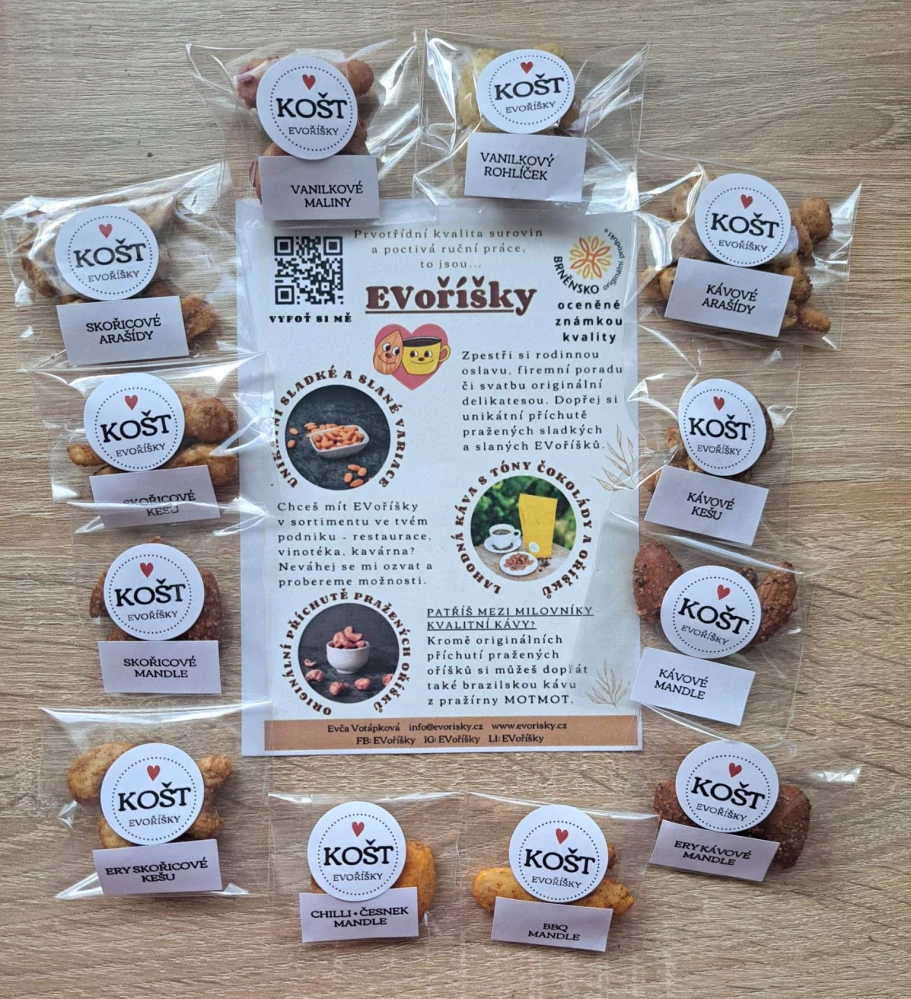 Koštovací set – ochutnej všechny druhy a vyber si, čím si obohatíš sortiment, čím potěšíš své zákazníky. Sladké, slané i sugar free EVoříšky zdarma – pouze za cenu dopravného.